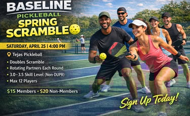 Spots are limited to 12 players. Register on Tejas Pickleball App.